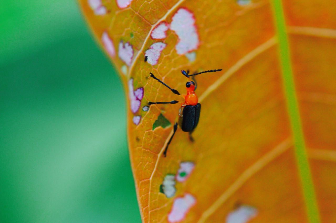 Energy transfer on a mango leaf - taken at farms in India (2019).
